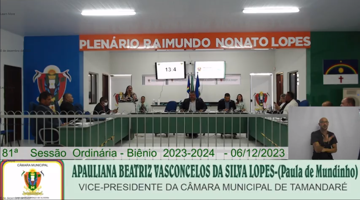 Confira a Sessão Ordinária da Câmara Municipal de Tamandaré.